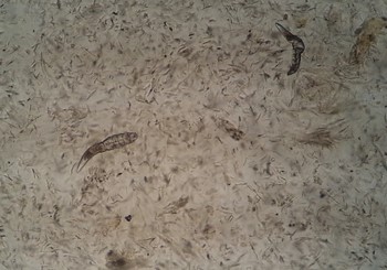 Demodex canis - ácaro causador da sarna demodécica visto ao microscópio (exame de raspado cutâneo)