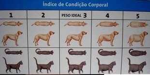 Existe ainda o sistema de escore corporal para cães e gatos, que vai de 1 a 5, no qual o escore 1 representa um animal extremamente magro, o 3 um animal normal e o 5 um animal obeso.